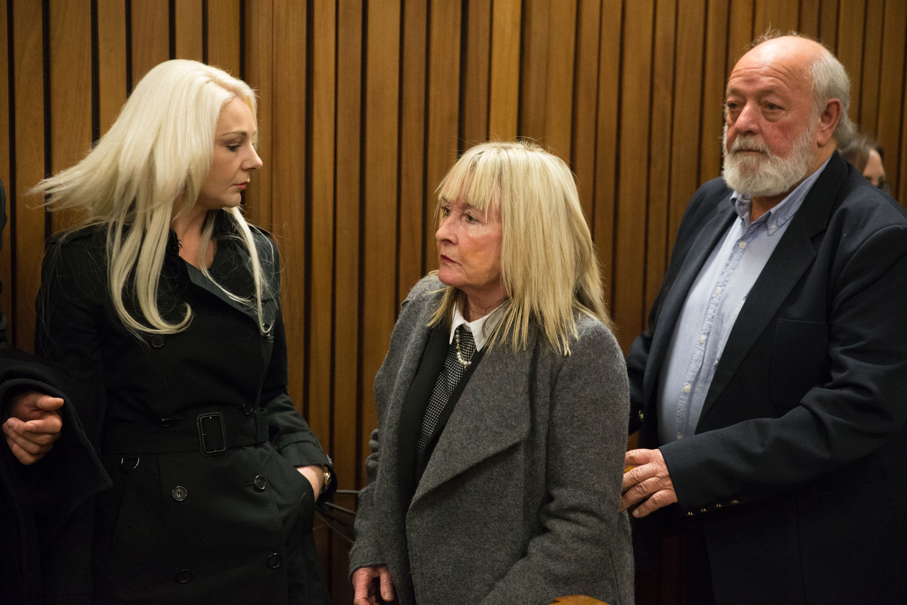 GettyReeva Steenkamp’s mother and father leave the court after the sentencing of Oscar Pistorius.